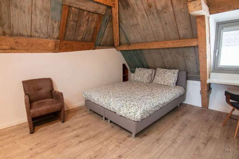 De 2 slaapvertrekken zijn identiek aan elkaar en beschikken alle twee over een badkamer. De slaapkamers zijn ongeveer 17 m2 groot en beschikken over een dakkapel, laminaatvloer, kasten en tweepersoonsbed. De beide badkamers zijn evens vanuit de slaapkamers te bereiken.