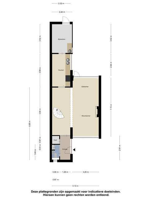 Begane grond: Entree met toilet. Vanuit de hal bereik je de ruime lichte woonkamer die voorzien is van plavuizen met vloerverwarming.