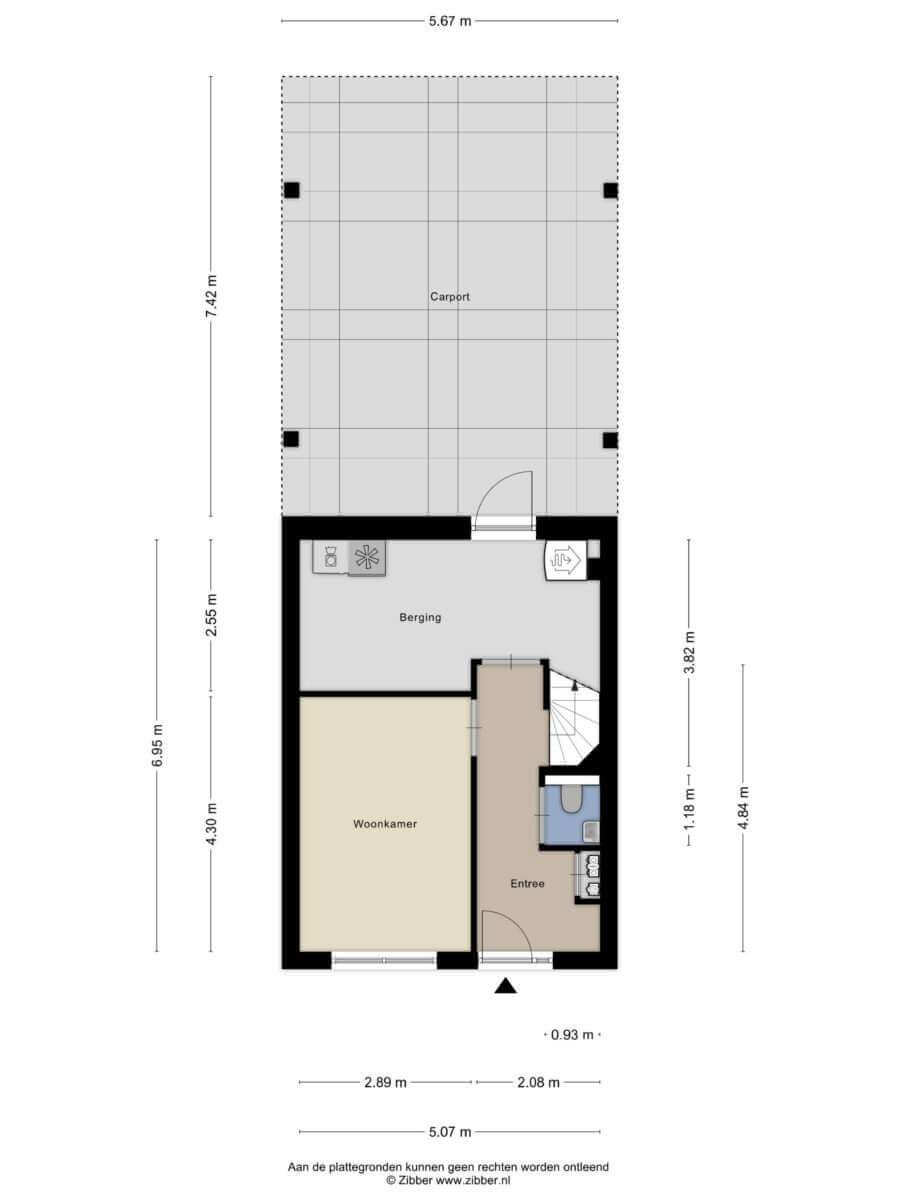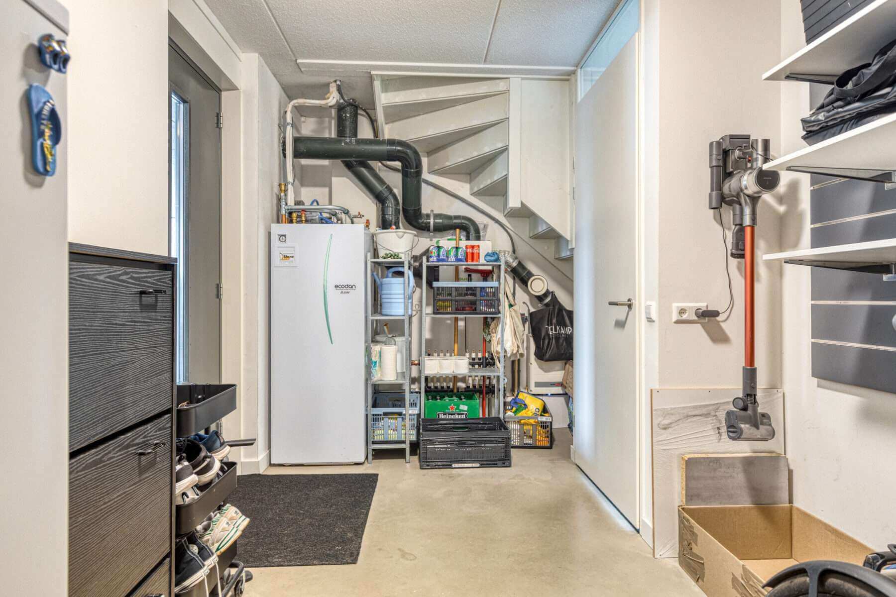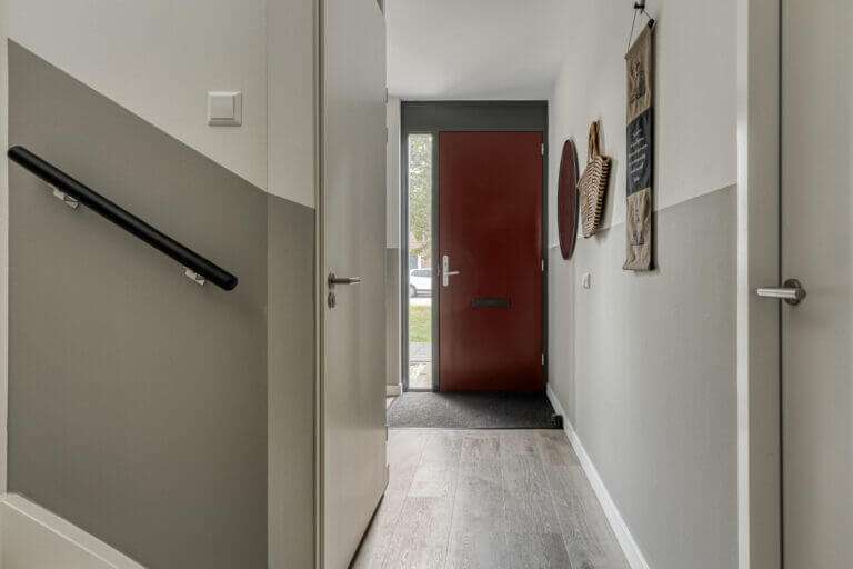 Bij aankomst kunt u uw auto in uw eigen carport parkeren en eventueel aansluiten op uw eigen laadpaal. Vanuit hier kunt u, dan wel door de achter deur via de carport naar binnen, dan wel via de voordeur aan de voorzijde.