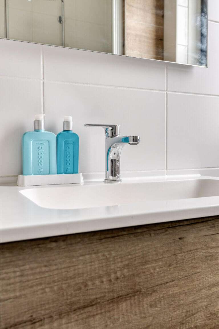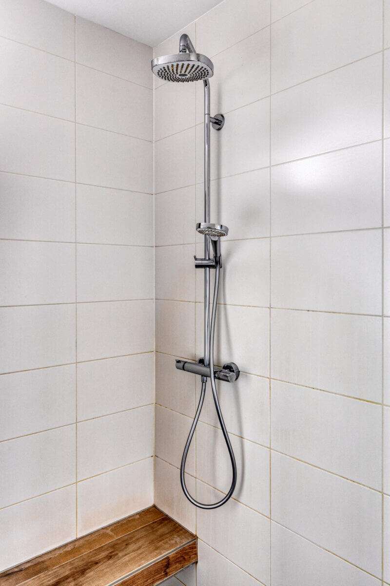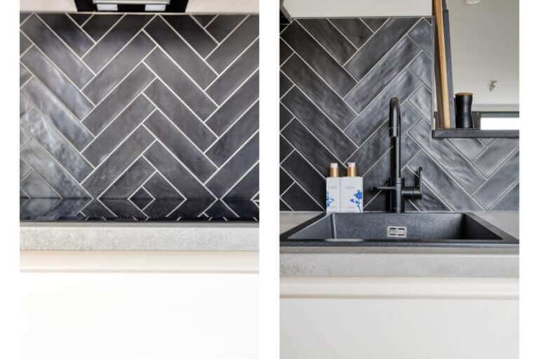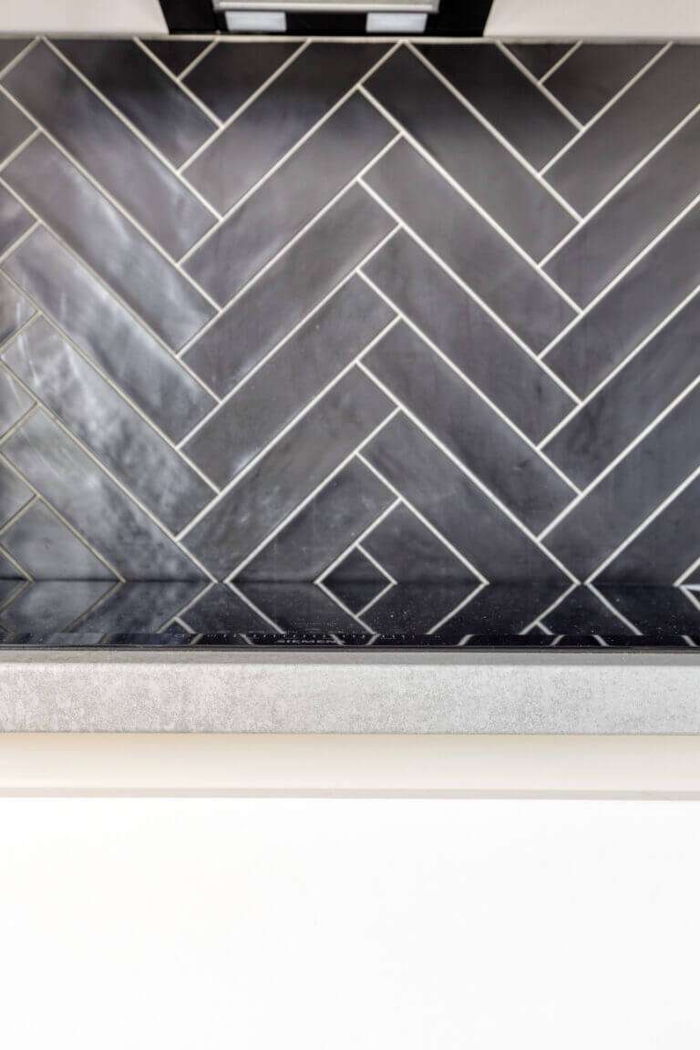 Helemaal leuk is dat je via de schuifdeuren bij de keuken het ruime zonneterras kunt betreden. Als de zon schijnt verplaats je hierdoor met je gezelschap makkelijk naar buiten, terwijl je met regen nog kunt genieten van de frisse lucht terwijl je aan de bar binnen een drankje drinkt. Een soort Nederlandse vertaling van het Californische ‘indoor outdoor living’, waarbij de buitenruimte gevoelsmatig tot verlengstuk van de binnenruimtes wordt gemaakt.