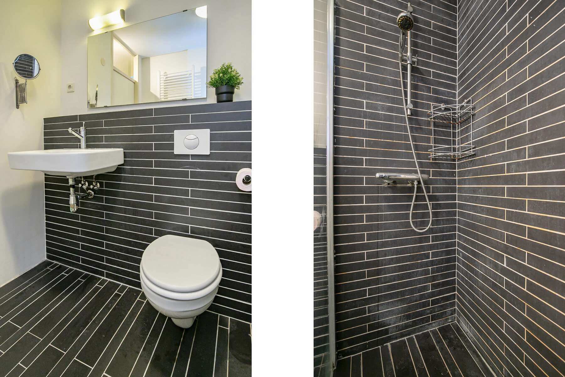 is voorzien van de wasmachine en droger aansluiting.
