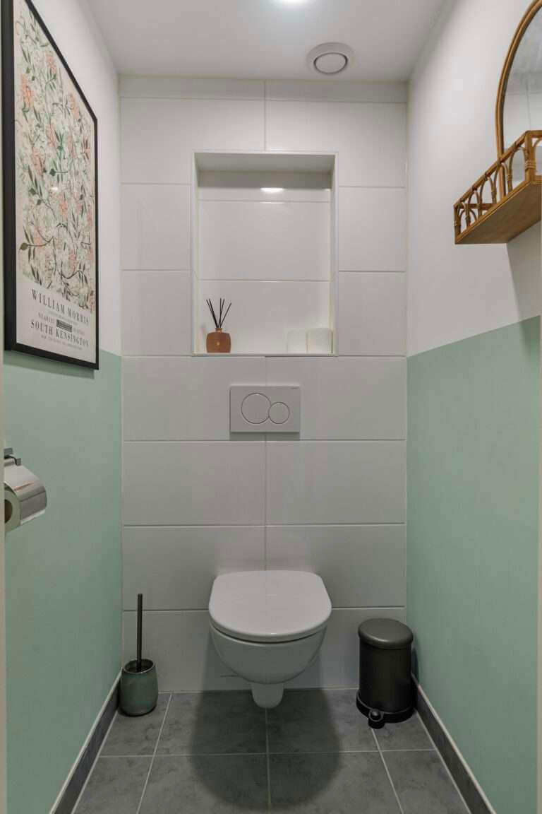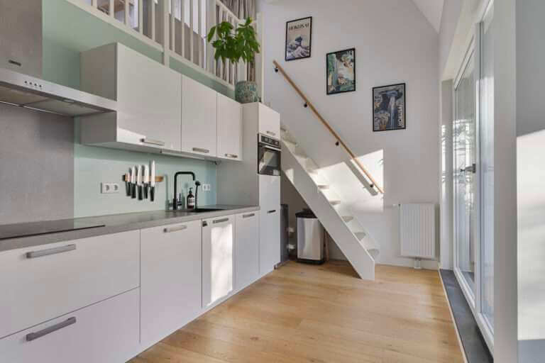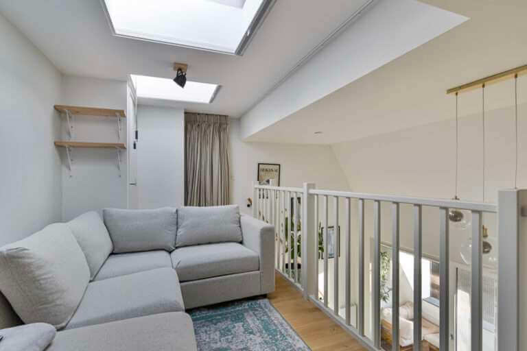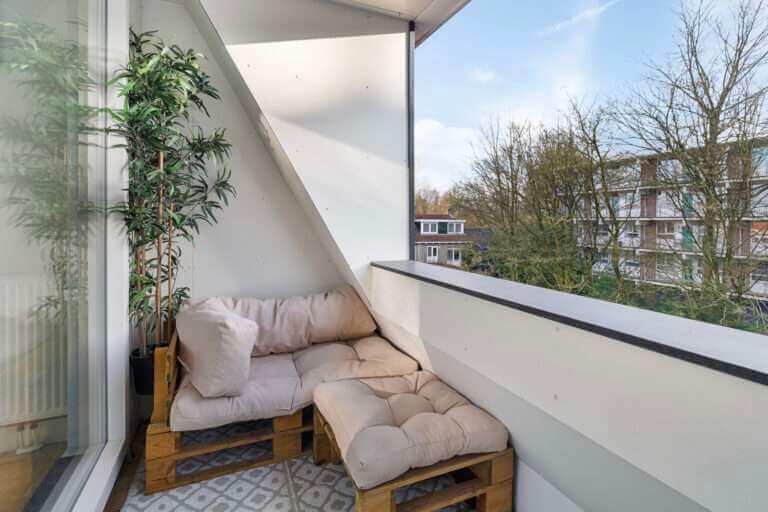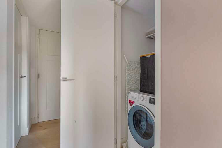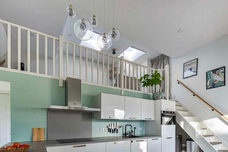– 2e verdieping: keuken, balkon, 2 slaapkamers, washok, badkamer
