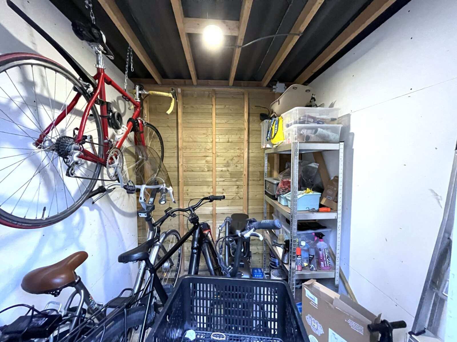 Er is een aparte privé schuur beschikbaar en parkeren kan voor de deur alwaar een parkeervergunning circa € 50 euro kost.