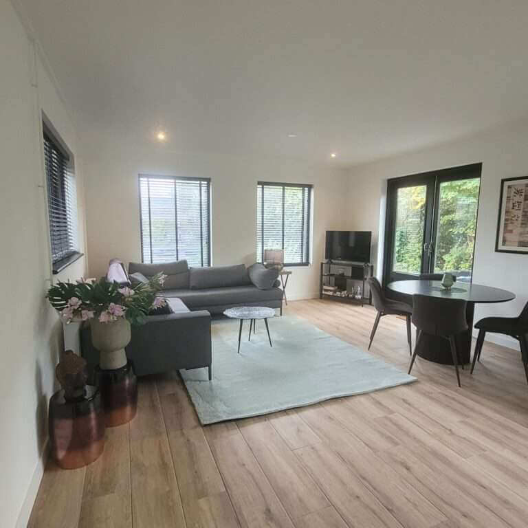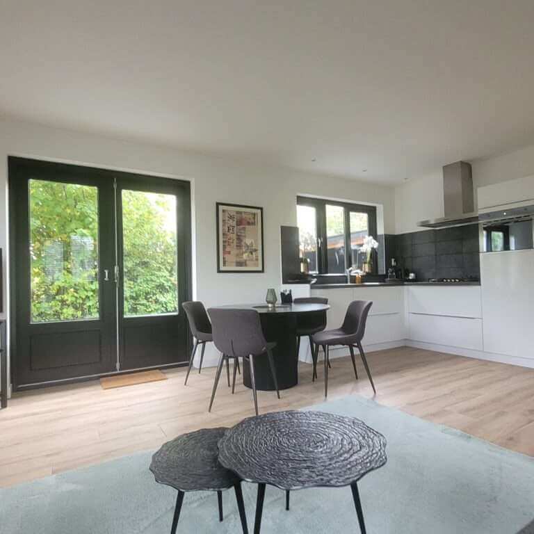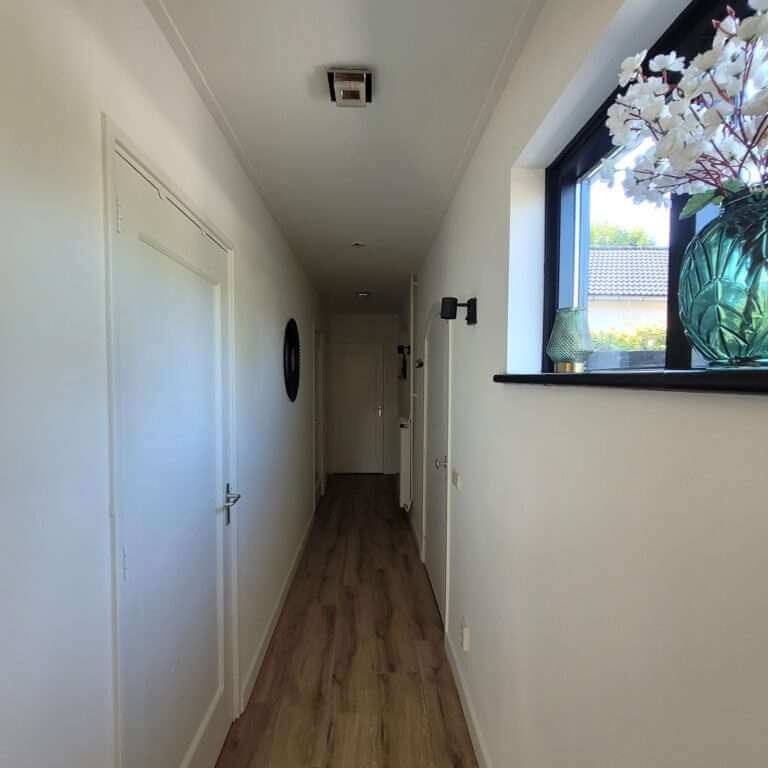 Via de entree, voorzien van een hoogwaardige vloerafwerking, heeft u toegang tot de ruim opgezette woonkamer, voorzien van smaakvol meubilair en een moderne, goed toegeruste open keuken. Vanuit de woonkamer heb je een riant uitzicht naar zowel de voortuin en zij-tuin, welke vanuit de kamer zijn te bereiken. De ruim opgezette tuin is voorzien van een veranda, ruim terras en (fietsen) berging en biedt zeer veel privacy. De tuin is namelijk compleet afgeschermd, enerzijds door bossages, anderzijds door een nieuw geplaatste schutting. Eveneens is er de beschikking over een tweetal parkeerplaatsen.
