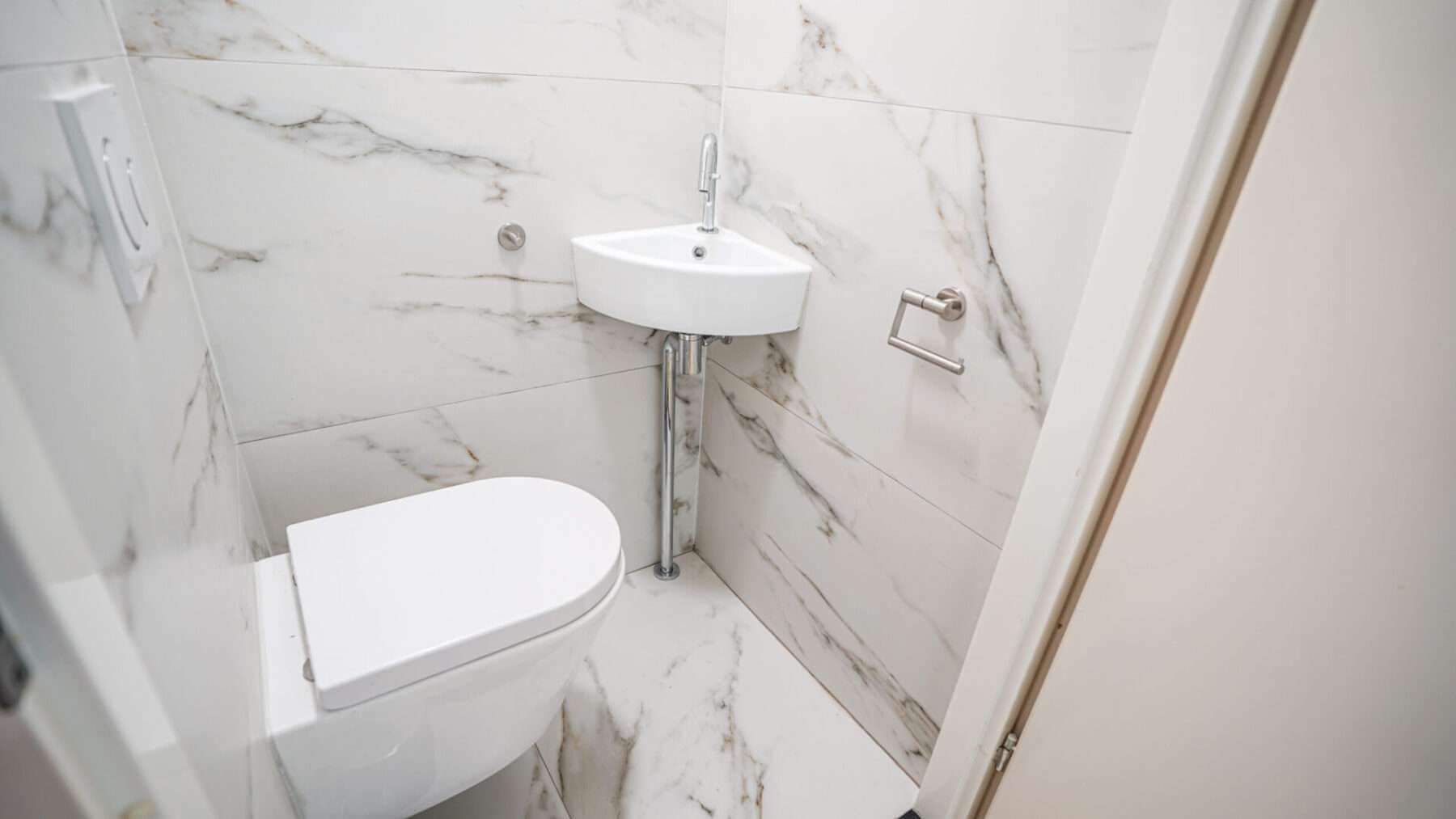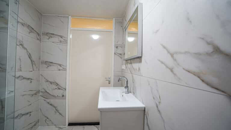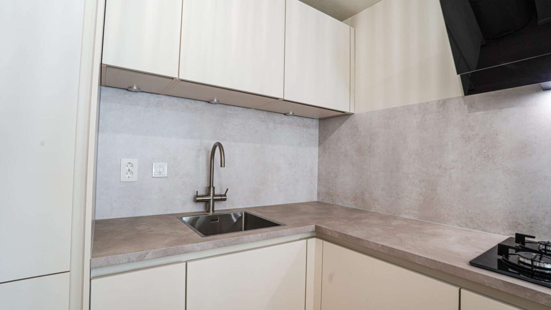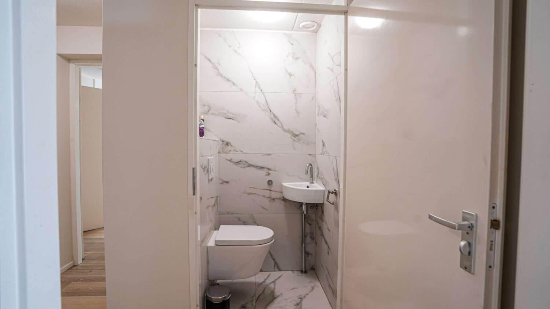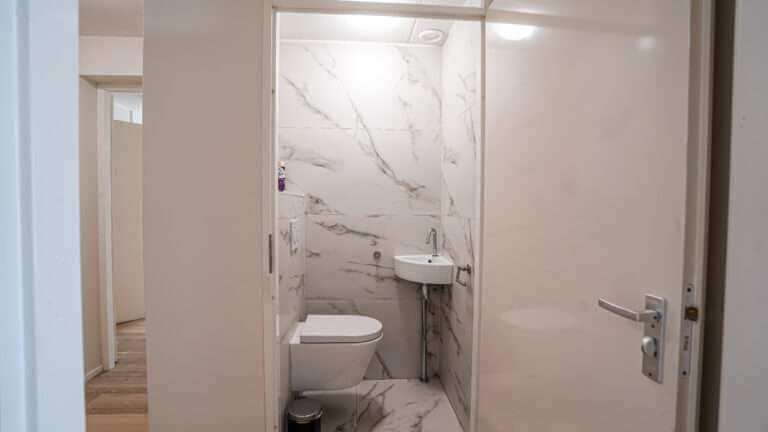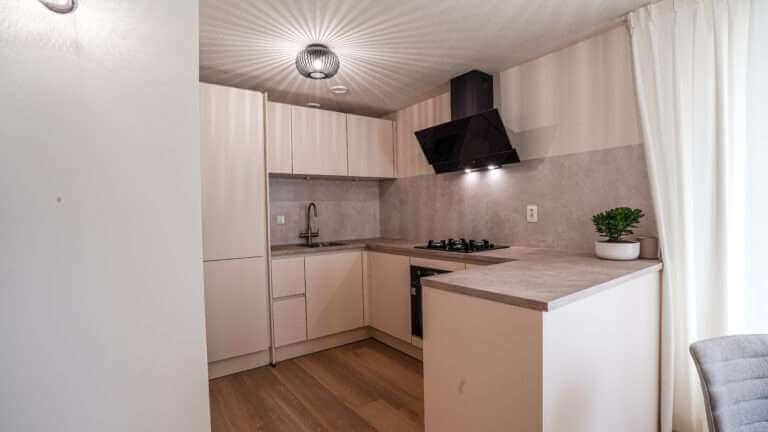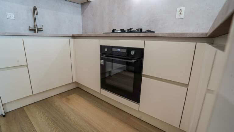 1e verdieping: Entree, hal met meterkast en toilet met fonteintje, badkamer met inloopdouche, wastafelmeubel, 2 slaapkamers, woonkamer met pvc vloer en vloerverwarming, open keuken met vaatwasser, koel-vriescombinatie, combi-oven, gaskookplaat en afzuigkap, ruime inpandige berging met wasmachine en droger.