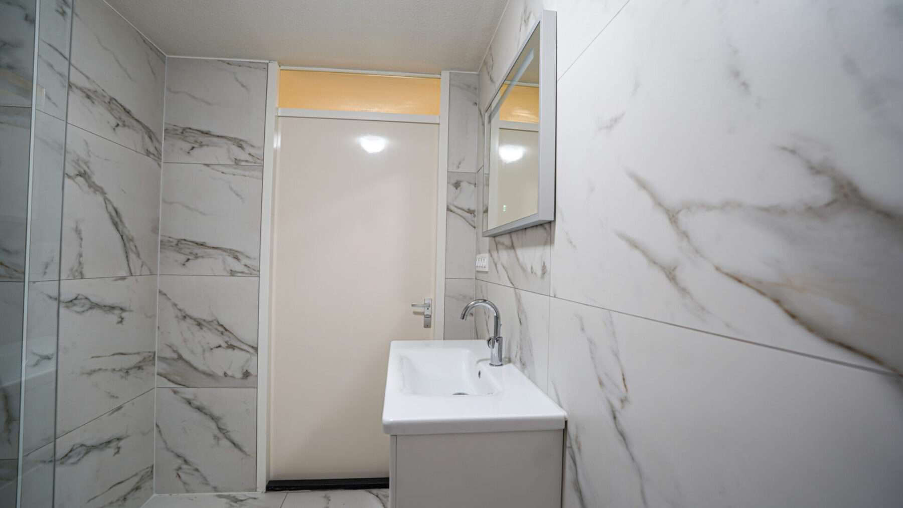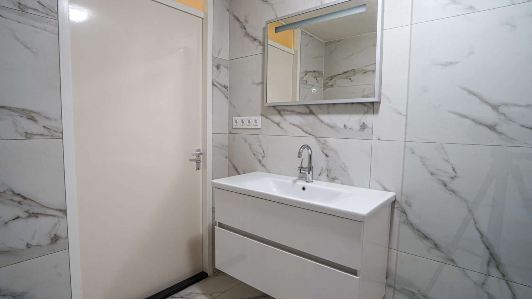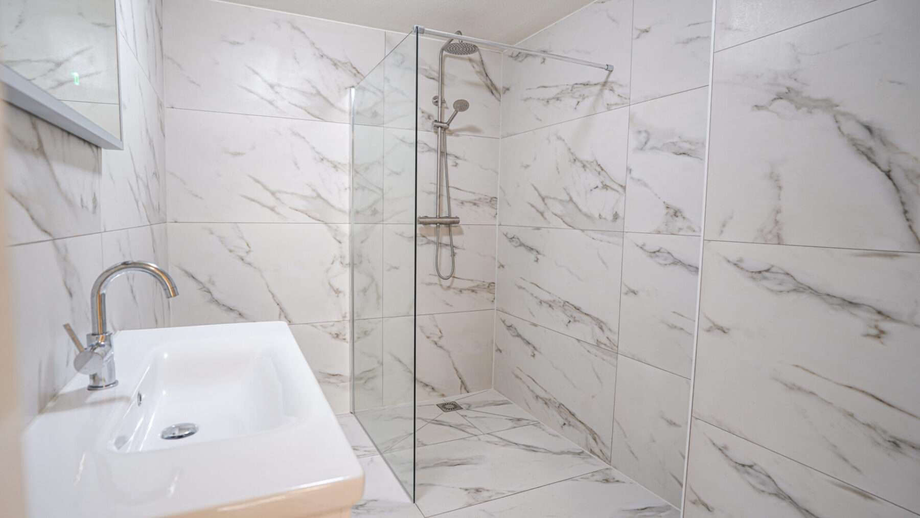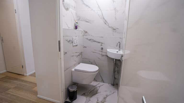 1e verdieping: Entree, hal met meterkast en toilet met fonteintje, badkamer met inloopdouche, wastafelmeubel, 2 slaapkamers, woonkamer met pvc vloer en vloerverwarming, open keuken met vaatwasser, koel-vriescombinatie, combi-oven, gaskookplaat en afzuigkap, ruime inpandige berging met wasmachine en droger.