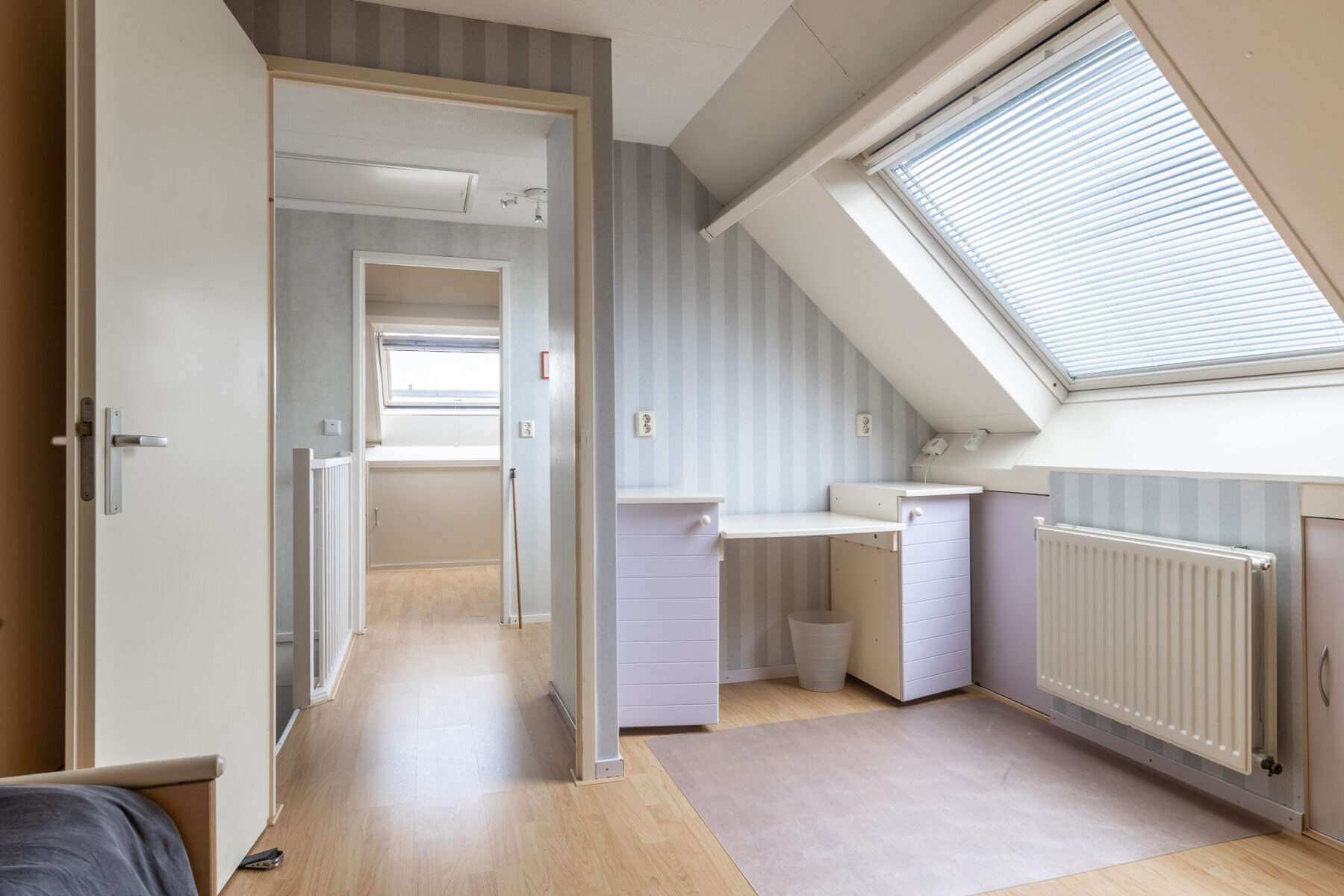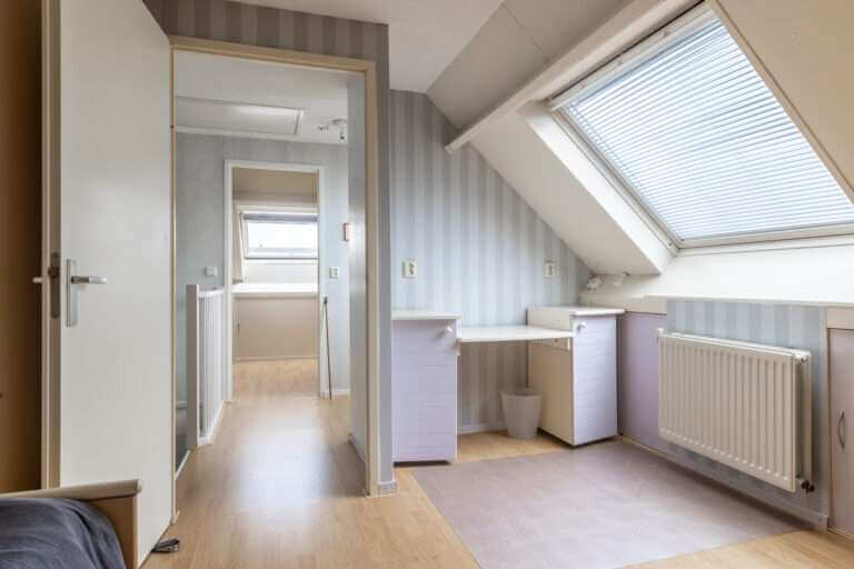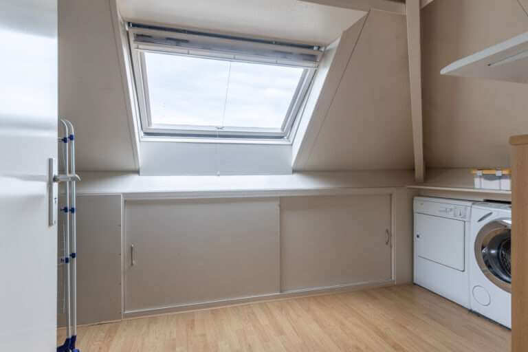Er is een vierde slaapkamer aanwezig en een aparte kamer waar de wasmachine en de droger (aansluitingen) aanwezig zijn