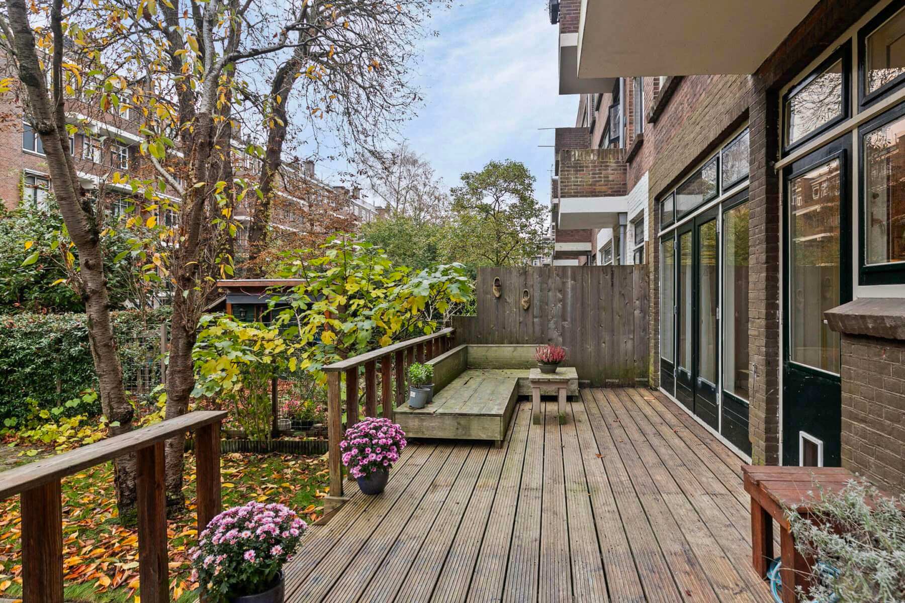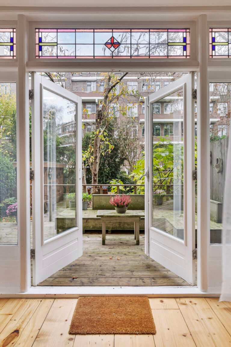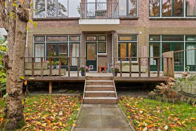 Fijne doorzonwoning gelegen met de woonkamer aan de de voorzijde en de woonkeuken met aangrenzende veranda en verzorgde ruime achtertuin gelegen aan de achterzijde.