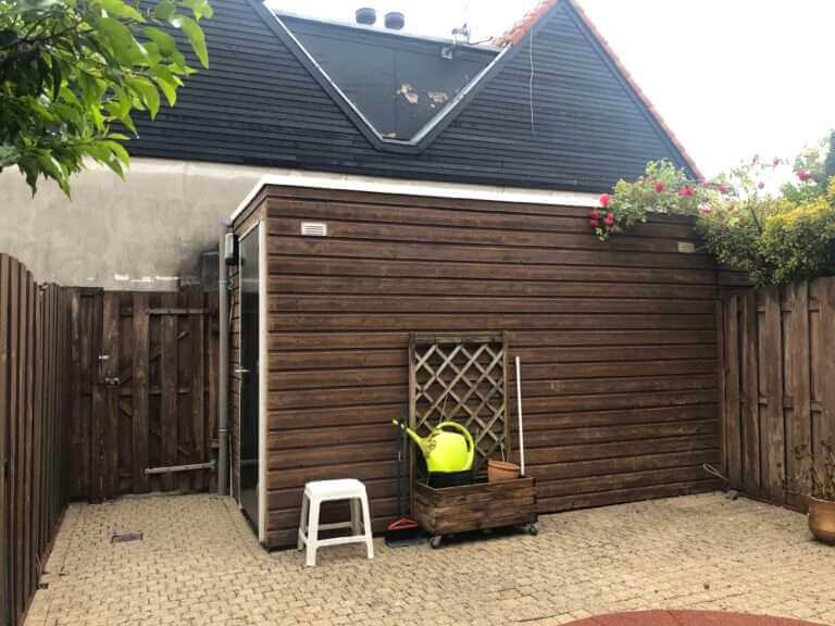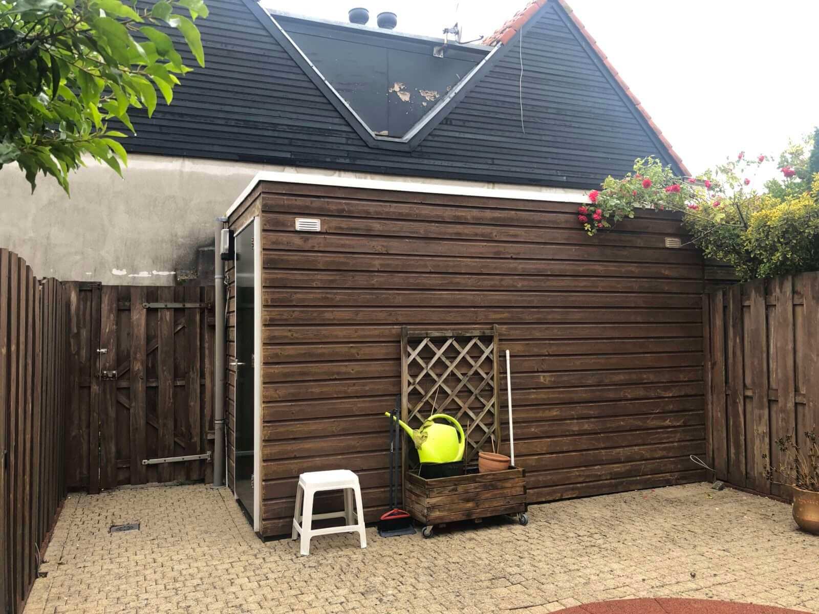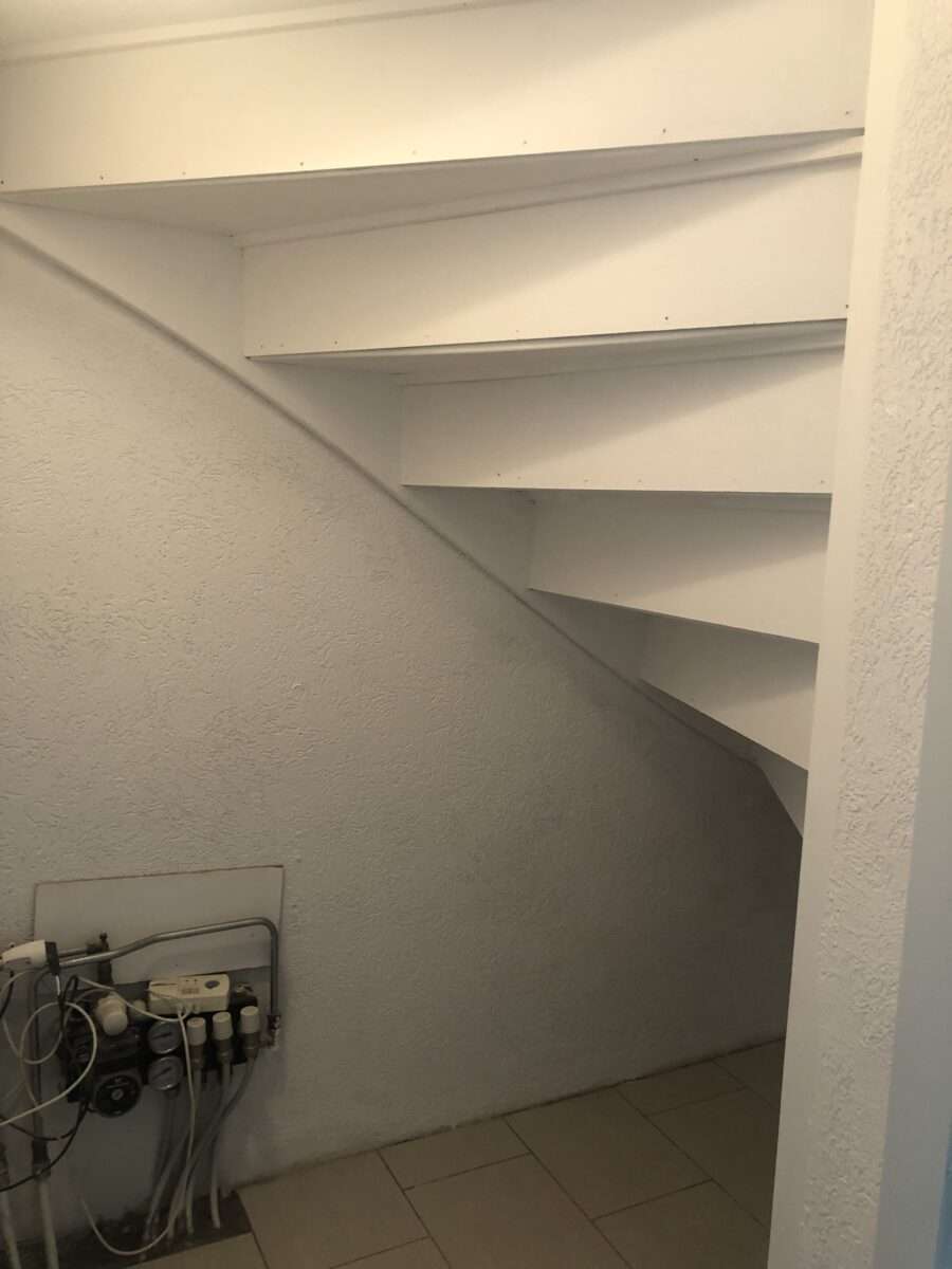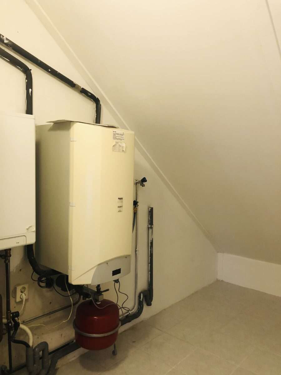 Ruime 4e slaapkamer, afgesloten wasruimte annex stookruimte met opstelling voor de wasmachine en droger.