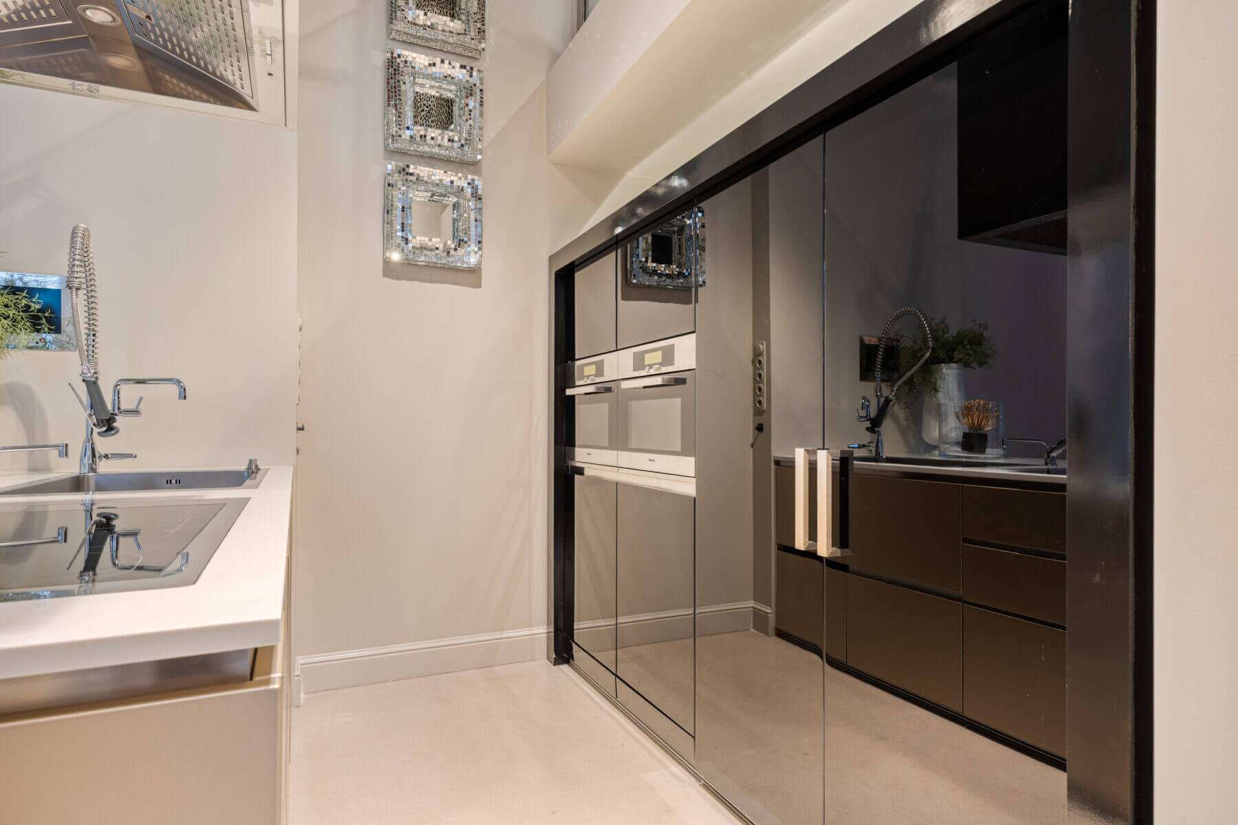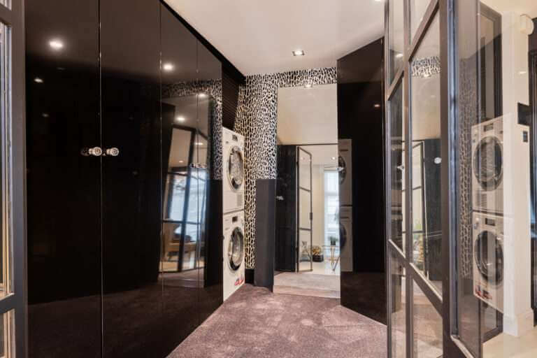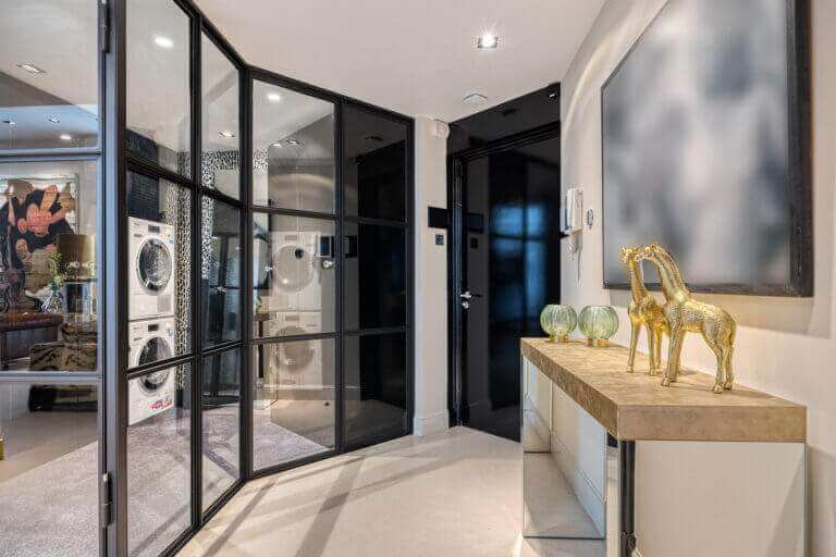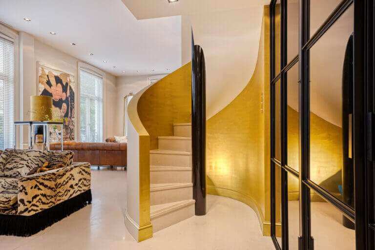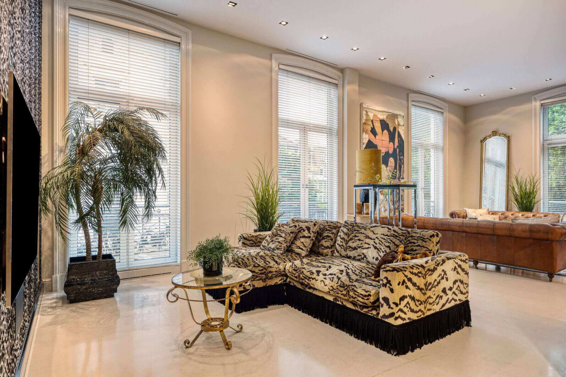 Hal met separate, ruime garderobekamer met kast- en wasruimte. Indrukwekkende woonkamer en open keuken. Vanwege de hoekligging, vele ramen en de hoogte spreekt de ruimte direct tot de verbeelding. Ieder detail is met zorg uitgekozen. De luxe keuken is voorzien van diverse inbouwapparatuur. Aansluitend aan de keuken vindt u het royale eetgedeelte met grote eettafel, waaraan heerlijk kan worden genoten van etentjes met vrienden en familie met uitzicht op het prachtige Vondelpark. De woonkamer beschikt over twee zithoeken, één waar heerlijk kan worden gerelaxt bij de haard, en de ander waar televisie kan worden gekeken. De verlichting, jaloezieën en gordijnen zijn op afstand bedienbaar en door middel van het geïntegreerde B&O muzieksysteem kan er overal muziek worden geluisterd.
