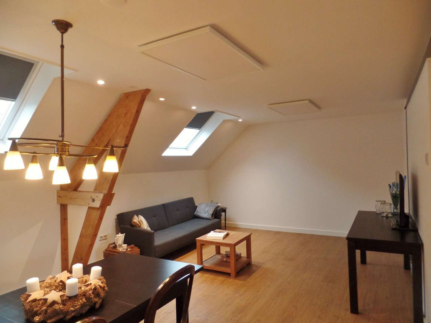 Verwarming middels comfortabele energiezuinige infrarood verwarmingspanelen.