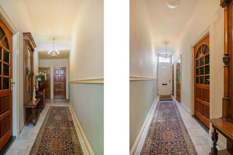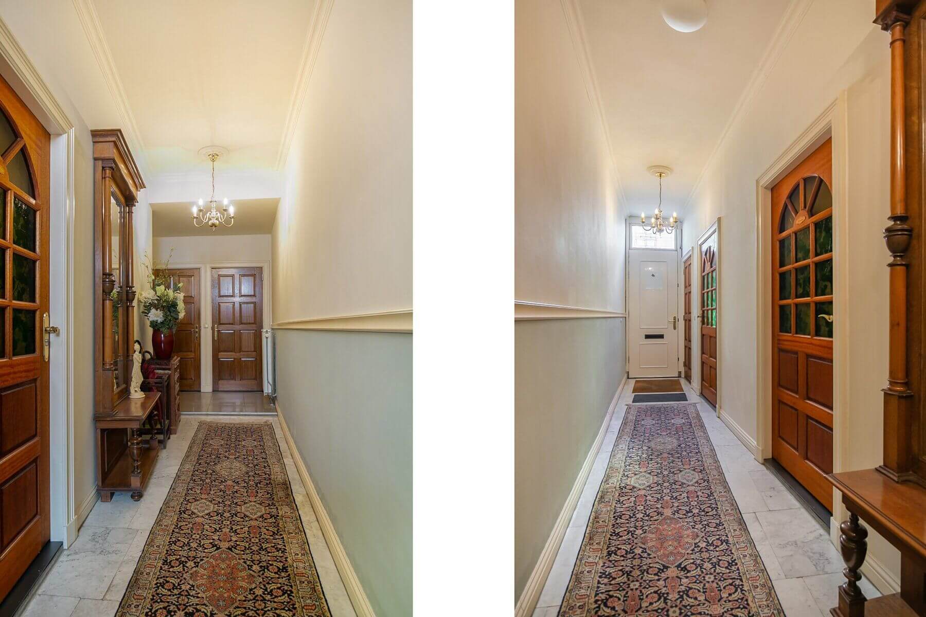 Hoofdentree met lange monumentale gang naar de entree van het appartement. De entree biedt toegang tot een trap naar de eerste verdieping. Op de begane grond is tevens een gemeenschappelijke wasruimte aanwezig waar u gebruik kunt maken van de gemeenschappelijke wasmachine en droger.