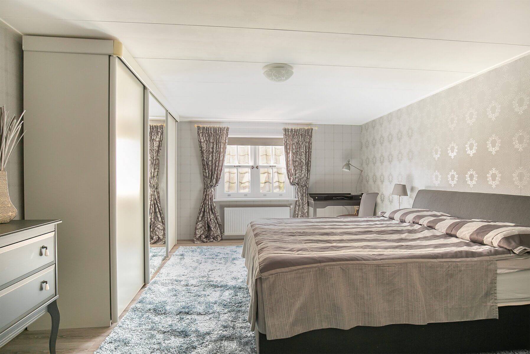 Via de trap bereikt u de overloop van 1e verdieping. De overloop biedt toegang tot de prachtige moderne en luxe uitgevoerde badkamer welke beschikt over een inloopdouche, toilet en wastafelmeubel. Bovendien vindt u op deze verdieping de mooie slaapkamer welke is voorzien van een grote garderobekast.